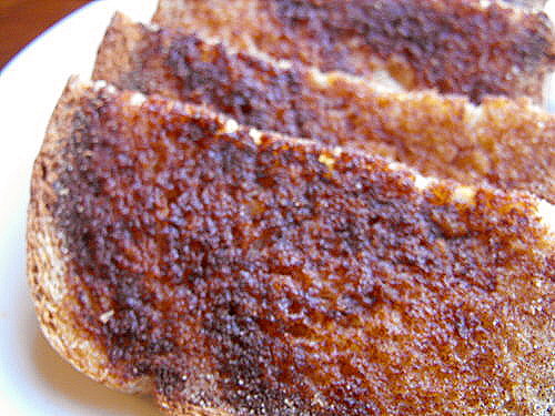 Now, if you like, you can stop right there. Let each slice sit for a minute for the butter to finish melting, and for the cinnamon to be moistened by the butter.
