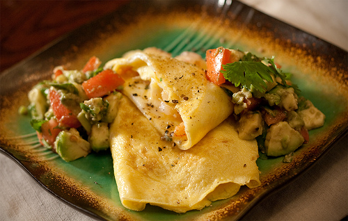 Omelets are an excellent brunch, not nearly as hard to do as Eggs Benedict. Neither do you need as many specialized ingredients. If you’ve got eggs you’re in business. Just add whatever looks best in your fridge. This particular morning, I had leftover crab meat from the steamed crab legs, which I’d doused with the remaining lemon butter the night before. I had 4 oz. of mushrooms, an avocado and some grated cheese. And the Get Out of the Doghouse Omelet was born.
