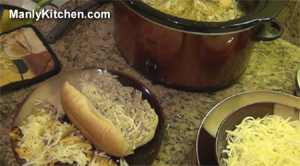 But not all people like beef; some prefer chicken. And it is for those people that I created my version of an Italian chicken sandwich. This is an extremely easy recipe that requires very little in the way of prep time. All you do is put the ingredients in a slow cooker and turn it on. Many hours later, you pull the chicken apart, return it to the juice, and start building scrumptious sandwiches.